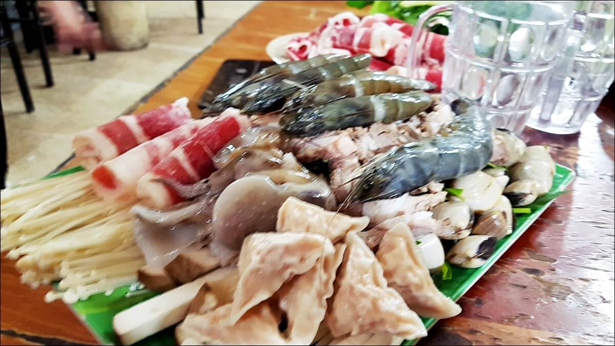 It feels like Korean sausage stew, squid, shrimp, octopus, temples, shellfish, etc.